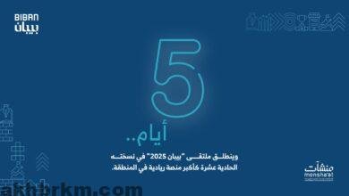 تنطلق الأربعاء المقبل فعاليات ملتقى “بيبان 2025” الذي تنظمه الهيئة العامة للمنشآت الصغيرة والمتوسطة “منشآت” خلال الفترة من 5 إلى…