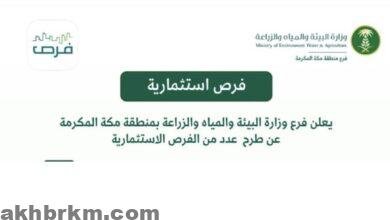 أعلن فرع وزارة البيئة والمياه والزراعة بمنطقة مكة المكرمة، عن طرح ثمانٍ من الفرص الاستثمارية النوعية عبر منصة “فرص”، وذلك…
