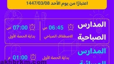 أعلنت الإدارة العامة للتعليم بالطائف عن بدء تطبيق الدوام الصيفي اعتباراً من يوم الأحد 08 ربيع أول 1447 هـ في…