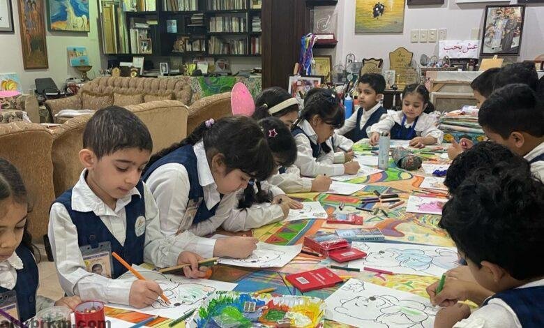 الفنان التشكيلي عبدالعظيم الضامن يستقبل الأطفال في جزيرة تاروت احتفالًا باليوم العالمي للفن