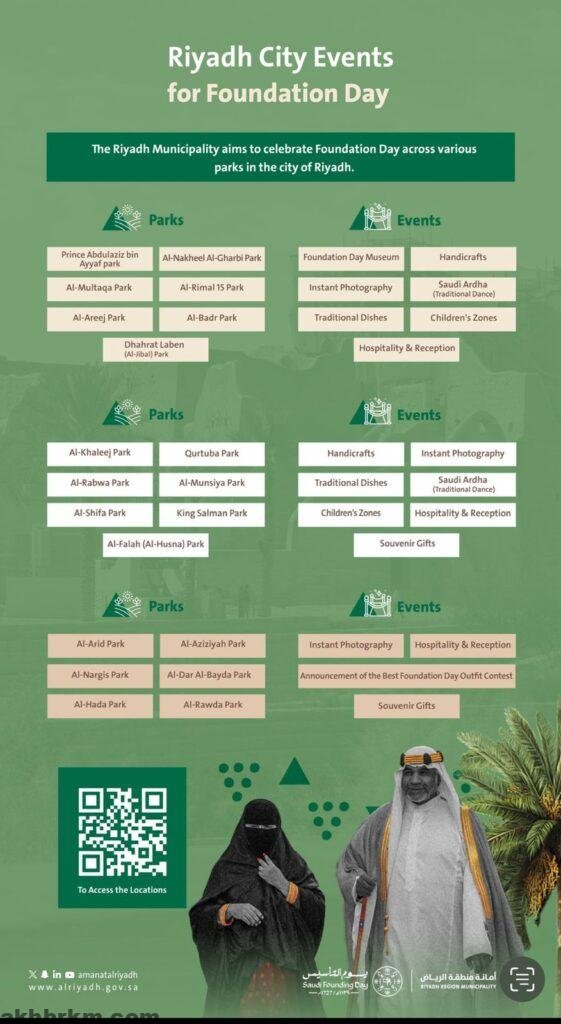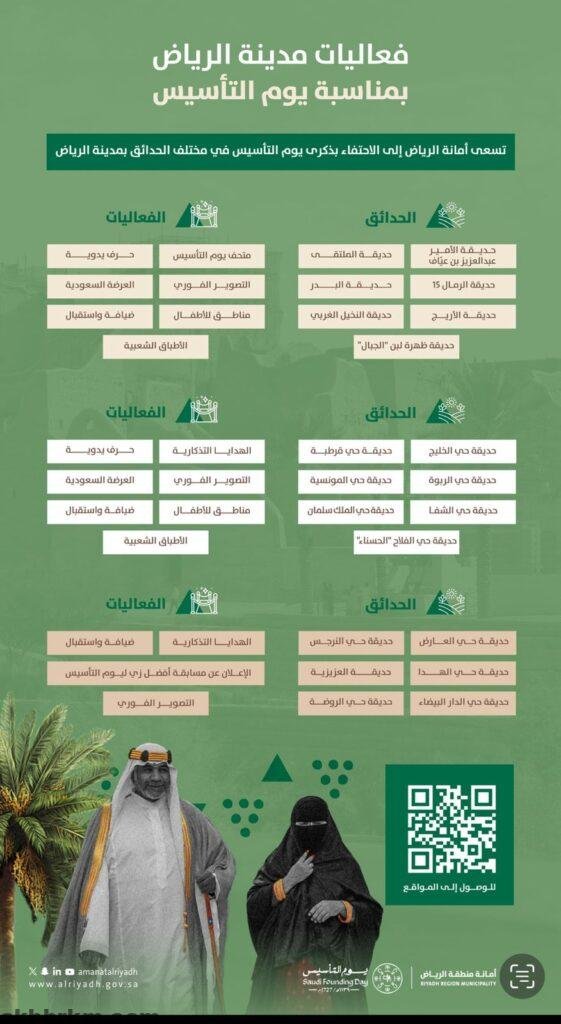 أمانة الرياض تحتفي بيوم التأسيس بفعاليات تعزز الهوية الوطنية في 20 موقعا في العاصمة.