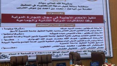الحربي ينال درجة الدكتوراه في القانون التجاري الدولي من جامعة المنصورة