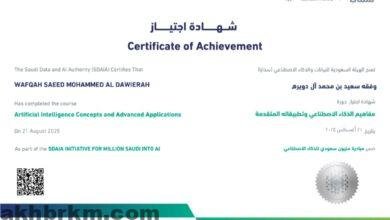 الإعلامية وفقه سعيد آل دويره تحصل على شهادة “مفاهيم الذكاء الاصطناعي وتطبيقاته المتقدمة”