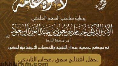 برعاية صاحب السمو الملكي الأمير الدكتور حسام بن سعود بن عبدالعزيز أمير منطقة الباحةتدعوكم جمعية رغدان للتنمية والخدمات الاجتماعية لحضور…
