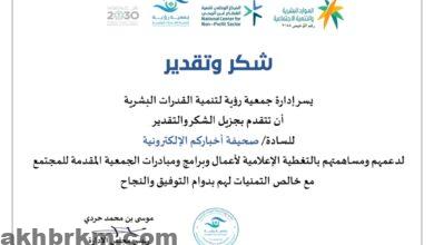 كرمت جمعية رؤية لتنمية القدرات البشرية صحيفة “أخباركم” الإعلامية تقديرًا لدعمها ومساهمتها في التغطية الإعلامية لأعمال وبرامج ومبادرات الجمعية المقدمة…