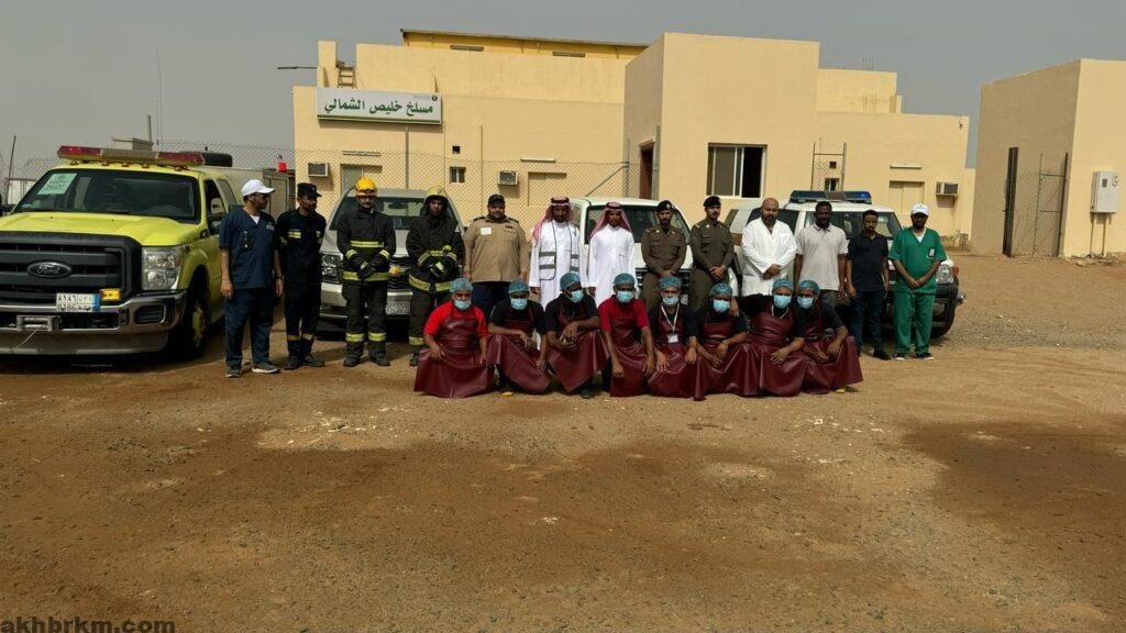 وشهد التمرين مشاركة شرطة محافظة خليص، وإدارة الدفاع المدني، وهيئة الهلال الأحمر السعودي بالمحافظة، حيث جرى تنفيذ الفرضية وفق خطة مُعدة مسبقًا تحاكي الواقع الميداني.