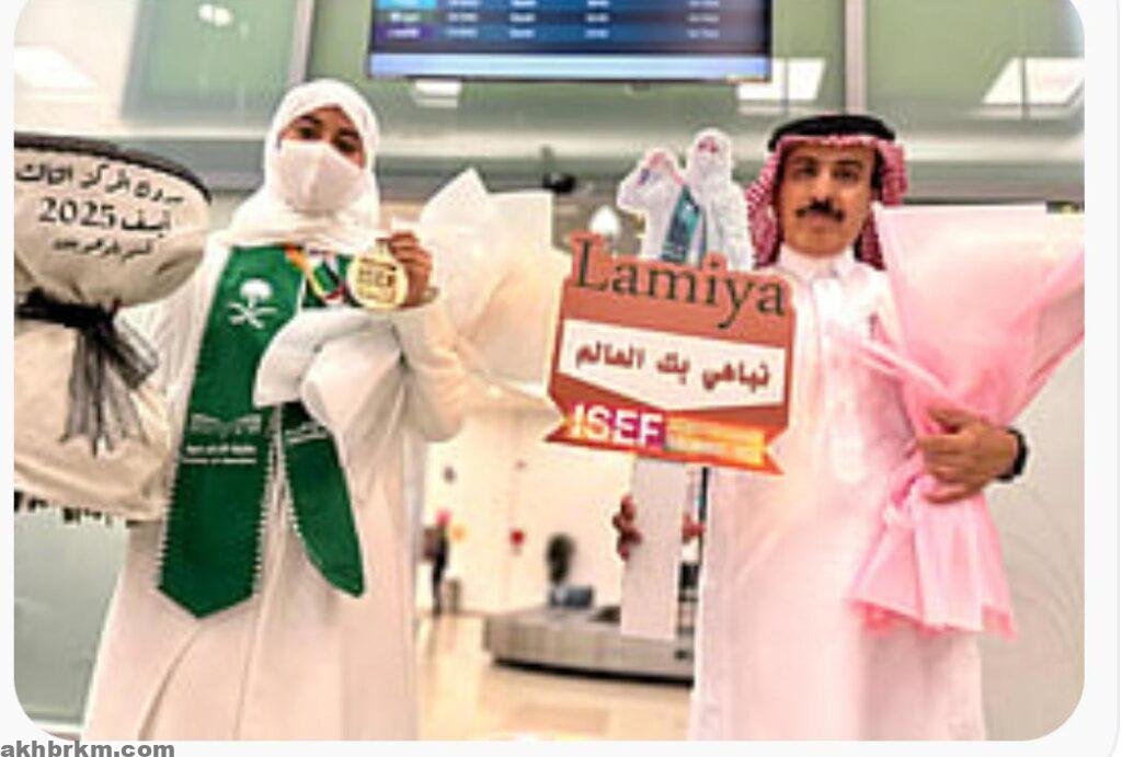 استقبال حافل للطالبة لمياء النفيعي بمطار الطائف بعد تحقيقها المركز الثالث عالميًا في آيسف 2025