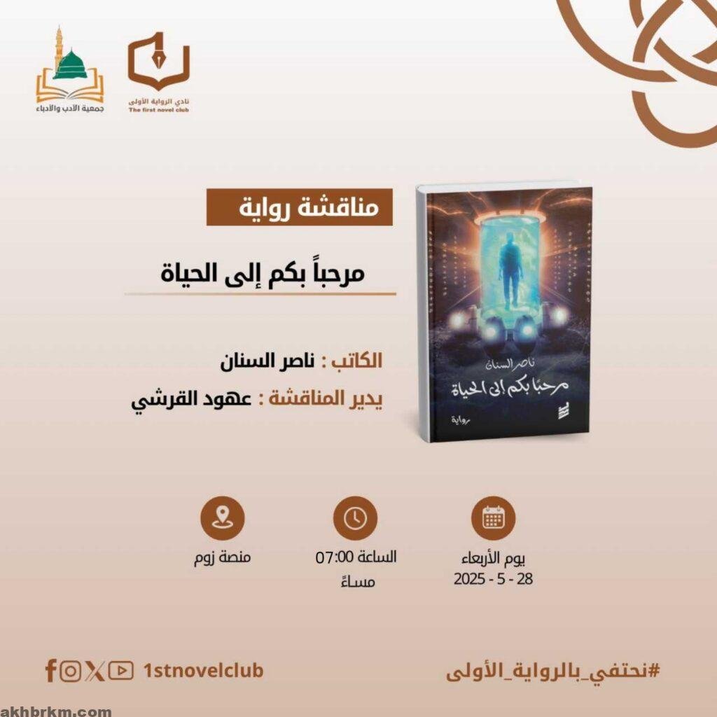 يستعد نادي الرواية الأولى لعقد لقائه العاشر يوم الأربعاء الموافق 28 مايو 2025م، بالتزامن مع غرة شهر ذي الحجة، وذلك لمناقشة رواية “مرحباً بكم إلى الحياة” للكاتب السعودي ناصر السنان، عبر منصة “زووم”، ضمن سلسلة اللقاءات الدورية التي ينظمها النادي لتسليط الضوء على باكورات الأعمال الروائية في المملكة وخارجها.