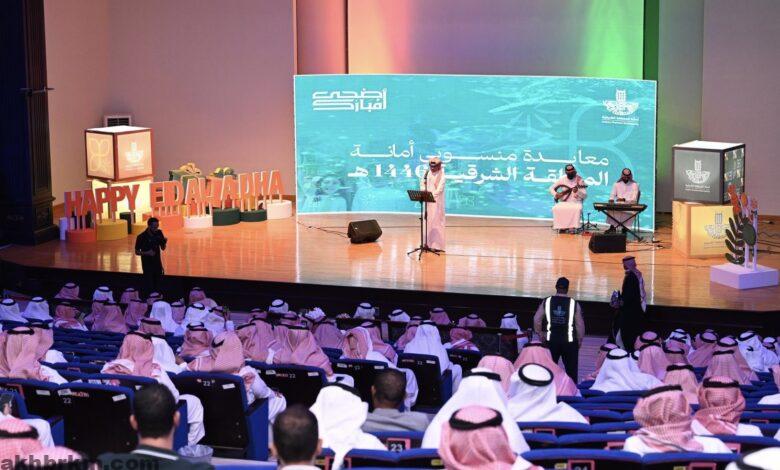 استقبل معالي أمين المنطقة الشرقية المهندس فهد بن محمد الجبير، المهنئين بمناسبة عيد الأضحى المبارك وذلك خلال الحفل التي أقامته الأمانة اليوم الأحد 19/ ذو الحجة/1446ه، بحضور الوكلاء، ومديري الإدارات، ورؤساء البلديات، ومنسوبي الأمانة والبلديات، بمقر أمانة المنطقة الشرقية.