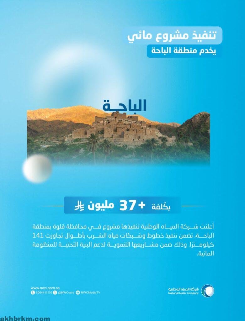 وقالت الشركة: “لقد تضمن المشروع استكمال تنفيذ خطوط ناقلة وشبكات مياه بطول (141,870) مترًا طوليًا في محافظة قلوة بمنطقة الباحة، بالإضافة إلى إنشاء محطة ضخ بسعة إجمالية تتجاوز (8.4) ألف متر مكعب يوميًا، وذلك بهدف رفع نسبة التغطية، وإيصال المياه إلى أكبر عدد من السكان في المحافظة والقرى التابعة لها، بكُلفة إجمالية تجاوزت (37) مليون ريال لخدمة أكثر من (10) آلاف مستفيد”.