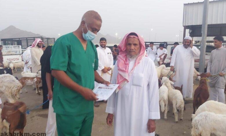 نفّذ مكتب وزارة البيئة والمياه والزراعة بمحافظة العرضيات، بالتعاون مع مركز وقاء بمنطقة مكة المكرمة، حملة توعوية وإرشادية تحت عنوان “أضحيتي”، وذلك في سوق الخميس الشعبي بالمعقص، بهدف رفع الوعي لدى المواطنين والمقيمين بالاشتراطات الصحية الواجب توافرها في الأضاحي، وتعزيز السلوكيات السليمة في اختيارها وذبحها.
