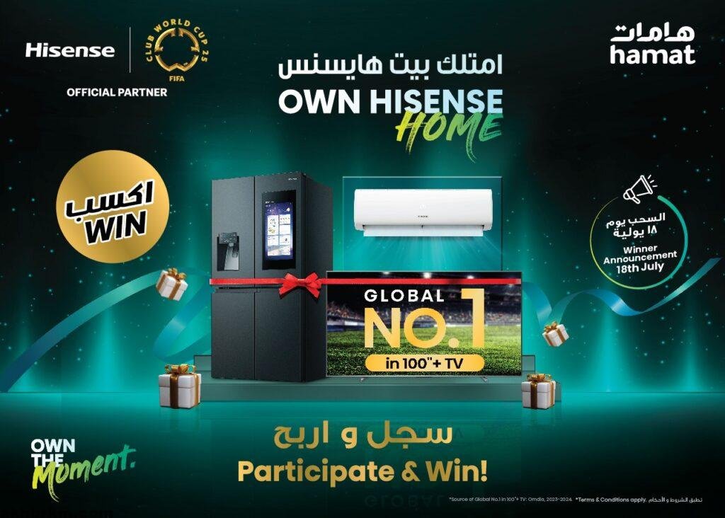 يمكن لزوار مناطق تشجيع هايسنس التسجيل في حملة “امتلك بيت هايسنس” في الموقع للدخول في السحب على مجموعة مميزة من أجهزة هايسنس المنزلية تشمل: تلفزيون بحجم 100 بوصة، ثلاجة ذكية، غسالة، ومكيف هواء. وسيُعلن عن الفائز المحظوظ في السحب الكبير بتاريخ 18 يوليو. وتشمل المشاركة عملاء هامات في المواقع التالية: الرياض بارك، بانوراما مول في الرياض، ذا فيلج في جدة، وتبوك بارك.