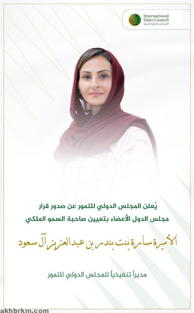 تعيين الأميرة سارة بنت بندر بن عبدالعزيز آل سعود مديرًا تنفيذيًا للمجلس الدولي للتمور