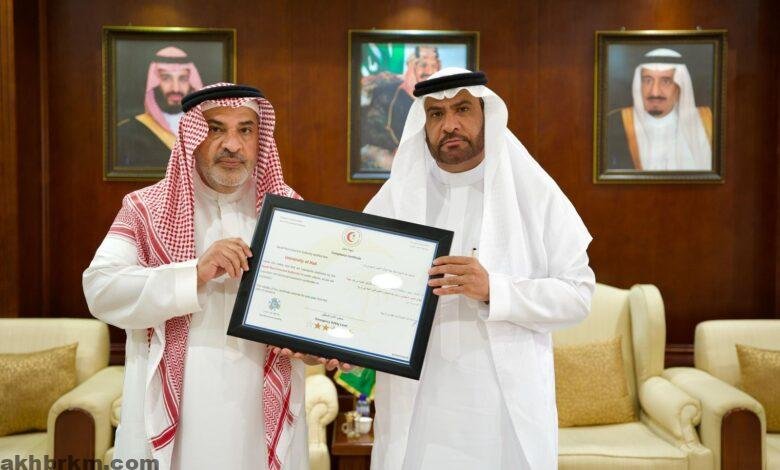 مدير عام فرع هيئة الهلال الأحمر السعودي بمنطقة حائل يسلم جامعة حائل شهادة الامتثال الإسعافي