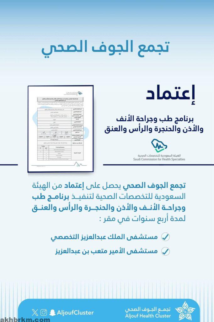 تجمع الجوف الصحي ينال اعتماد الهيئة السعودية للتخصصات الصحية لتنفيذ برنامج الأنف والأذن والحنجرة