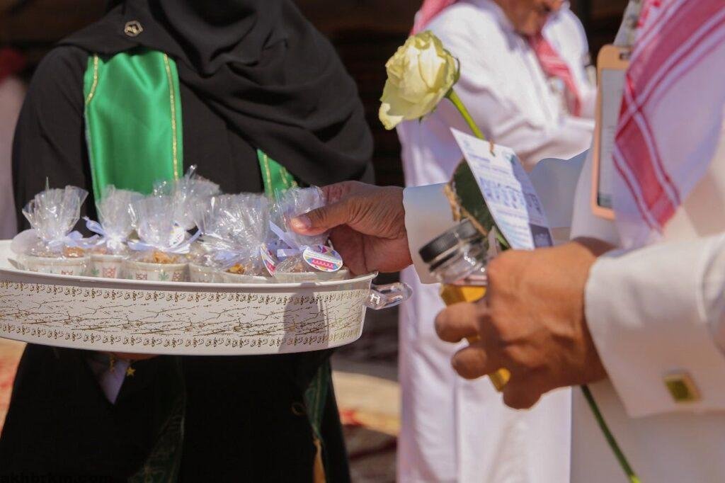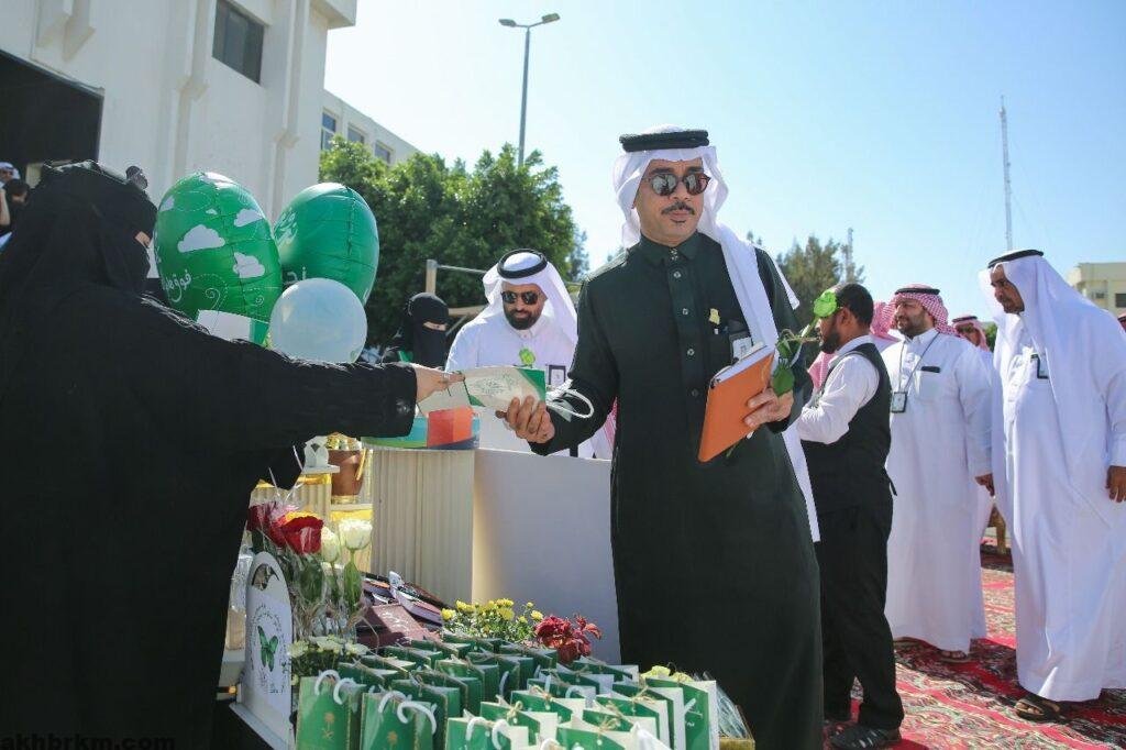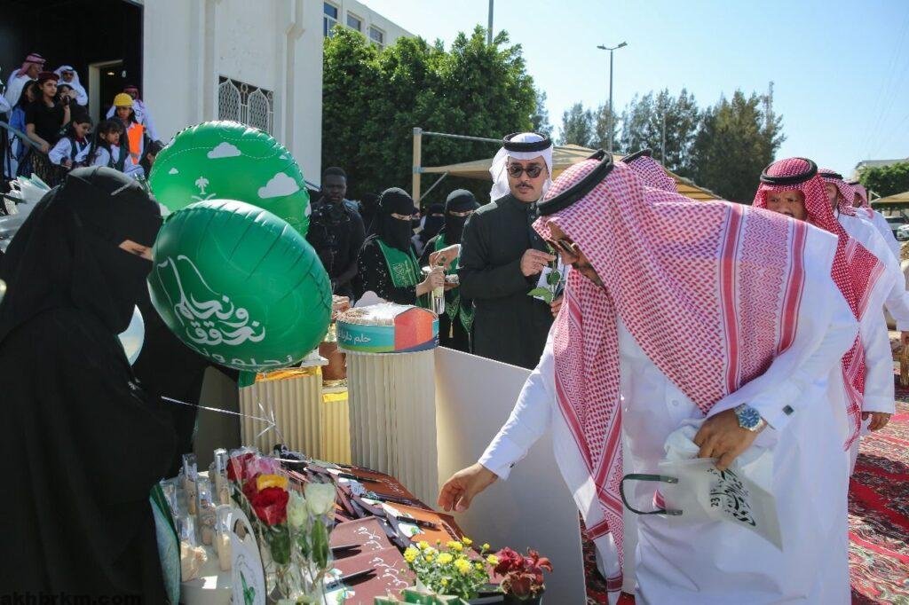 وتم توزيع الزهور على منسوبي الأمانة، وانطلقت الأغاني والأهازيج الوطنية، وتم انشاء خيمة تقليدية في المكان تعبيراً الماضي العريق لبلادنا العزيزة، وترسيخاً لقيم الوطنية والانتماء والولاء للقيادة الحكيمة والوطن الغالي.