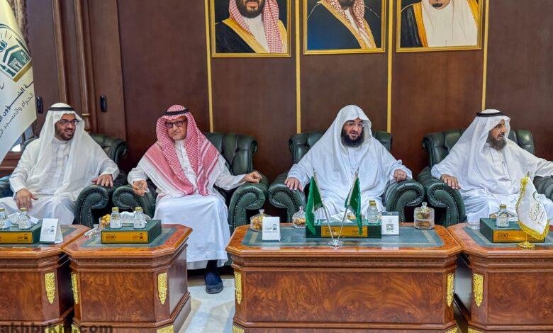استقبل معالي رئيس الشؤون الدينية بالمسجد الحرام والمسجد النبوي الشيخ الأستاذ الدكتور عبدالرحمن بن عبدالعزيز السديس بمكتبه برئاسة الشؤون الدينية بالمسجد النبوي فضيلة الشيخ الدكتور محمد بن أحمد الخضيري مساعد رئيس الشؤون الدينية بالمسجد النبوي، وفضيلة الشيخ عبدالله بن حطاب الحنيني الوكيل المساعد للشؤون الدينية بالمسجد النبوي، وأصحاب الفضيلة والسعادة مستشاري رئاسة الشؤون الدينية بالمسجد النبوي.