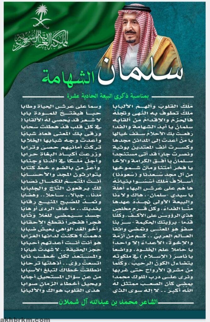 قريحة ” آل شملان ” تفيض شعراً في ذكرى البيعة: يا فخر أمتنا ومتن شموخها