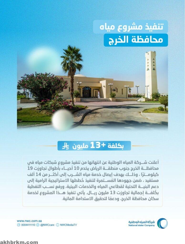 المياه الوطنية تُنتهي من تنفيذ شبكات مياه في محافظة الخرج تخدم 14 ألف مستفيد في 10 أحياء.