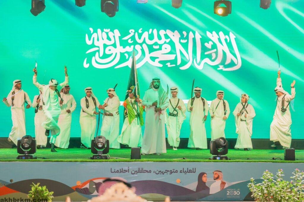 واتسم الإحتفال الوطني بالطابع الإجتماعي المتنوع من خلال إشراك كافة فئات المجتمع في التعبير عن مشاعر الفرح والولاء والعطاء لهذا الوطن المعطاء ، مُعبرين بكل الحب والوفاء لقادتنا حفظهم الله.