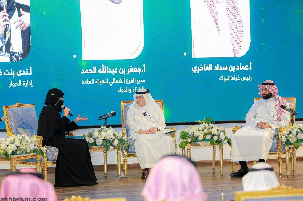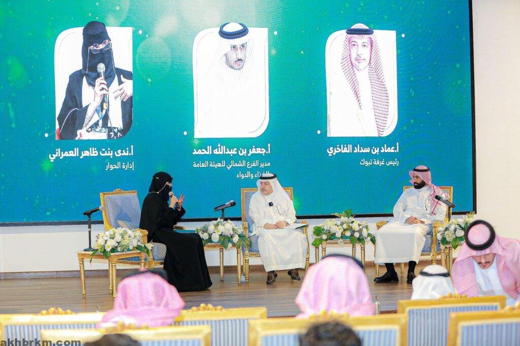 وتضمنت الورشة جلسة حوارية جمعت رئيس غرفة تبوك عماد الفاخري والأستاذ إبراهيم العنزي ممثل هيئة الغذاء والدواء بتبوك، لمناقشة أفضل السبل للتنسيق بين كافة الجهات فيما يخدم المستهلك وسلامته ورواد الأعمال وتنمية مشاريعهم.