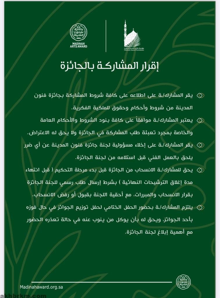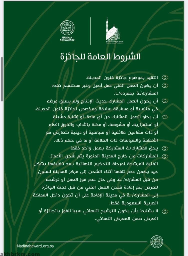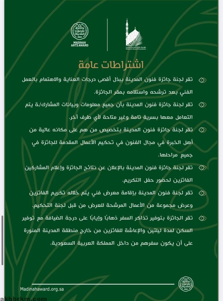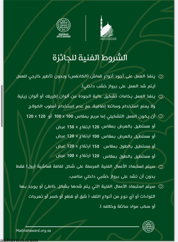 كما تتحمّل الجائزة تكاليف السفر ذهابًا وإيابًا من داخل المملكة، بالإضافة إلى توفير السكن والإعاشة لمدة ليلتين، وذلك للفنانين المتأهلين من خارج المدينة المنورة؛ دعمًا لمشاركتهم في الحفل والمعرض الختامي.