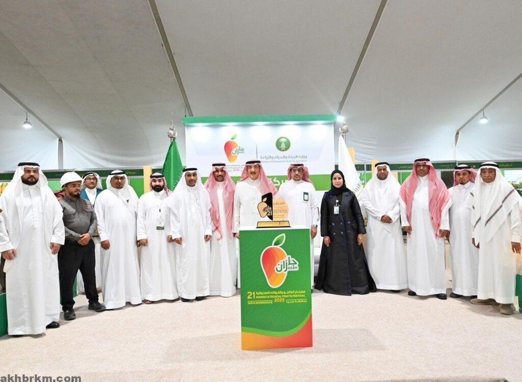 واطلع سموه خلال جولته في معرض المهرجان على مشاركة أكثر من 60 مزارعًا يعرضون أفضل منتجات المانجو والفواكه الاستوائية التي تشتهر بها المنطقة، كالبابايا، والموز، والتين، والجوافة، والقشطة، إضافةً إلى أجنحة الجهات الحكومية التي تستعرض برامج الدعم والخدمات الزراعية.