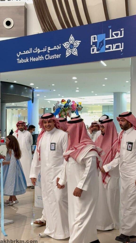 سعادة الرئيس التنفيذي لتجمع تبوك الصحي الأستاذ الدكتور فارس الهمزاني وسعادة مدير تعليم تبوك الأستاذ ماجد القعير وسعادة الرئيس التنفيذي لجمعية طفلي الطبية الأستاذ متعب الصقيري.