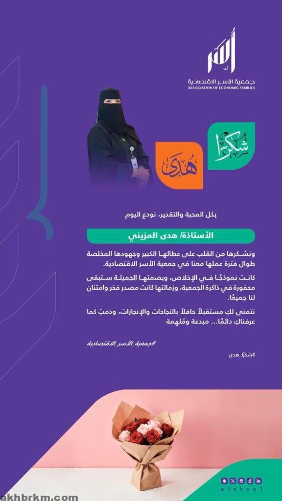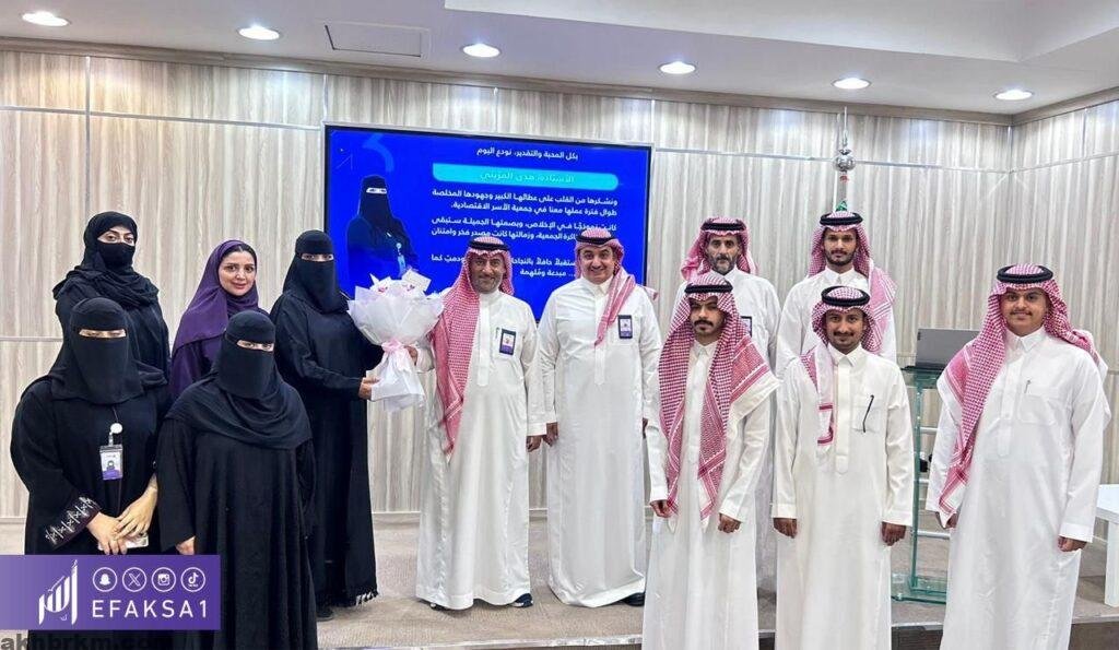 في لمسة وفاء واعتزاز، كرّمت جمعية الأسر الاقتصادية “أُسر” الأستاذة هدى بنت محمد المزيني، مسؤولة قسم الخدمة الاجتماعية في الجمعية، وذلك تقديرًا لعطائها الكبير وجهودها المخلصة التي شكّلت بصمة بارزة في مسيرة الجمعية طوال فترة عملها.