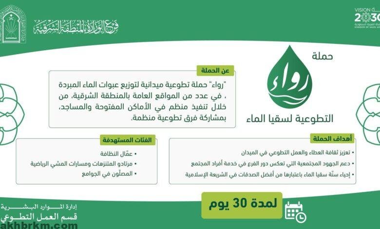 فرع “الشؤون الإسلامية” بالشرقية يطلق حملة “رواء” التطوعية لتوزيع أكثر من 24 ألف عبوة ماء