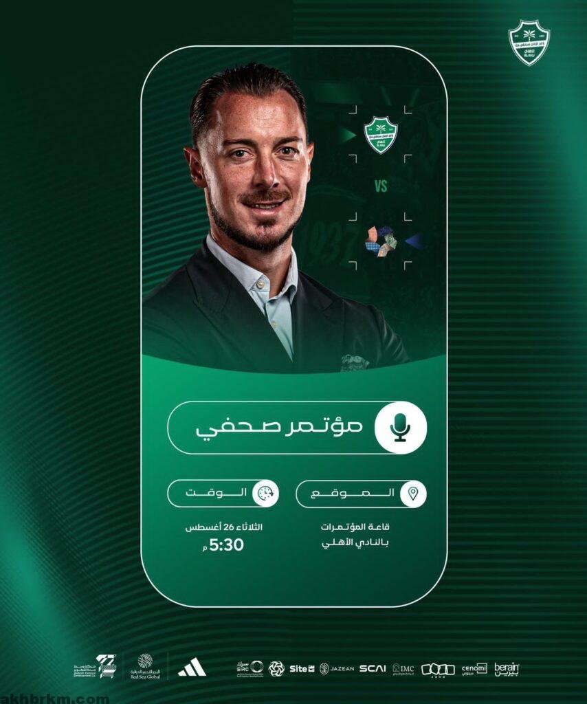يعقد المدير الفني للفريق الأول لكرة القدم بالنادي الأهلي السعودي الألماني ماتياس يايسله مساء اليوم الثلاثاء مؤتمرًا صحفيًا عند الساعة الخامسة والنصف في قاعة المؤتمرات بمقر النادي بجدة.