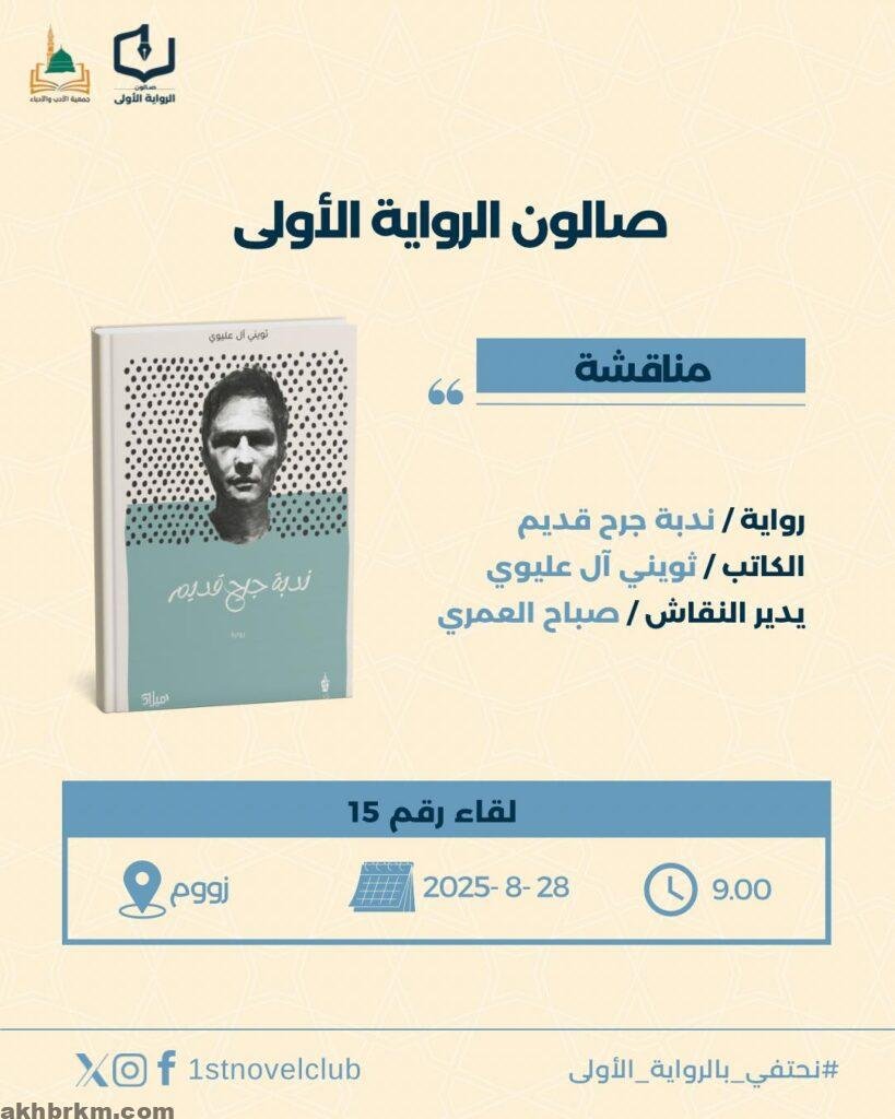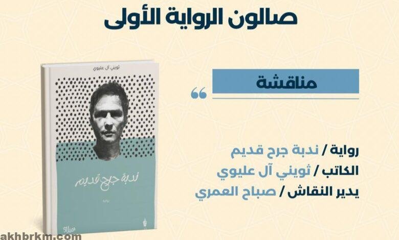 وسيتناول اللقاء رواية ندبة جرح قديم، التي تمثل التجربة الروائية الأولى للكاتب السعودي ثويني آل عليوي، على أن تدير الحوار الأستاذة صباح العمري، عضو الصالون.