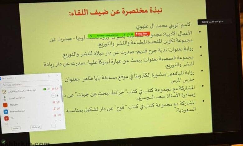 وأدارت اللقاء عضو النادي، الأستاذة صباح العمري، بأسلوب متميز، وسط حضور لافت من أعضاء النادي ونخبة من الأدباء والمثقفين والمهتمين بعوالم الرواية الأولى، سواء من داخل المملكة العربية السعودية أو من خارجها.