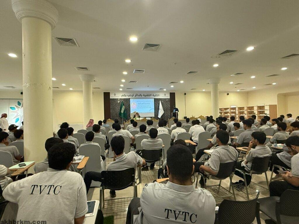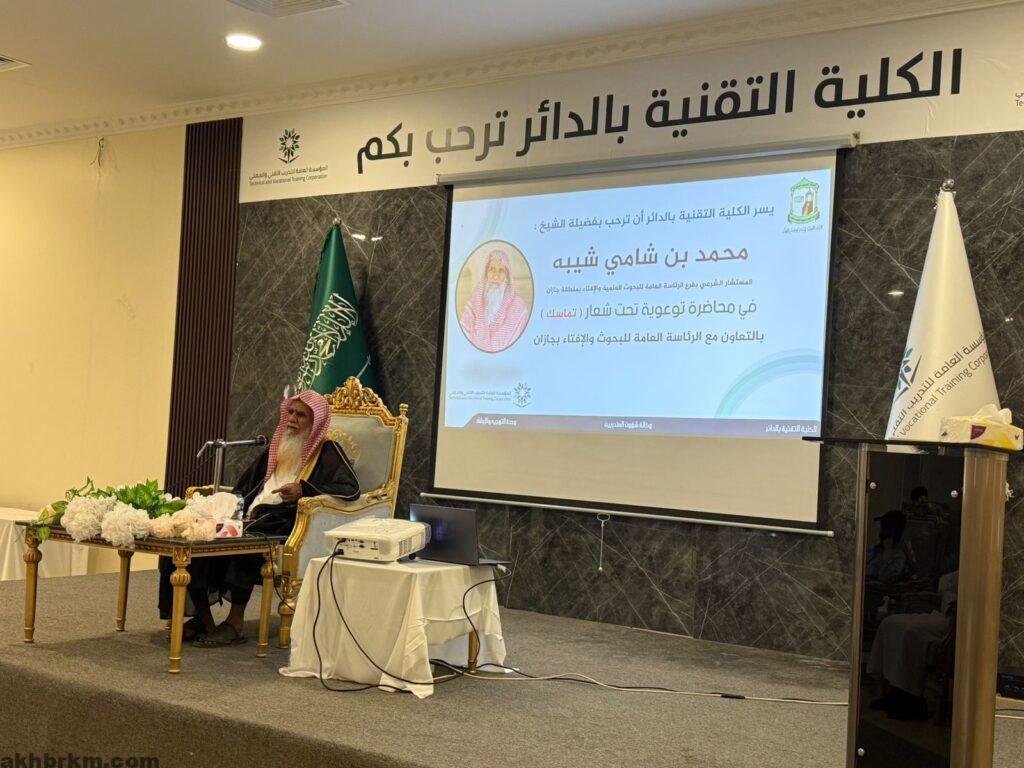 بموافقة كريمة من سمو أمير منطقة جازان -حفظه الله- وتوجيه ومتابعة من سماحة مفتي عام المملكة ومعالي نائبه -حفظهم الله- أقيم اليوم الأربعاء برنامج “تماسك” الذي يقدمه فضيلة المستشار الشرعي بفرع الرئاسة العامة للبحوث العلمية والإفتاء بمنطقة جازان، الشيخ محمد بن شامي شيبه ، بحضور عميد الكلية التقنية بالداير الأستاذ متعب بن عبدالله زيلعي وعدد كبير من طلاب الكلية التقنية بالداير ، وذلك على مسرح الكلية.