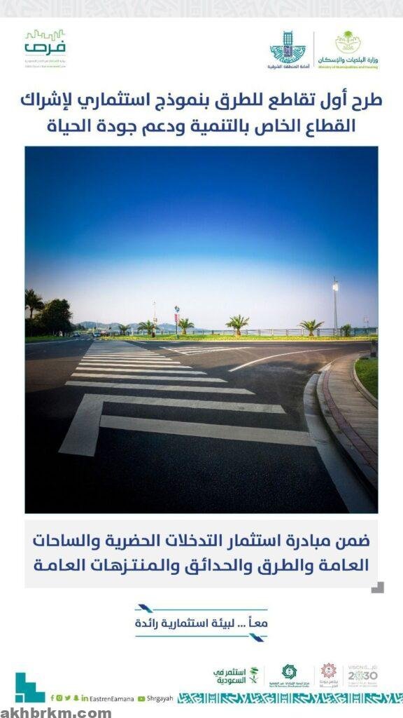 طرحت أمانة المنطقة الشرقية، أول فرصة استثمارية لتطوير تقاطع طرق بمدينة الدمام، في خطوة نوعية غير مسبوقة على مستوى المنطقة الشرقية، وذلك في إطار جهودها المستمرة لتعزيز شراكة القطاع الخاص في مشاريع التنمية الحضرية، وتحسين جودة الحياة، وتطوير المشهد الحضري، ورفع كفاءة الخدمات العامة، بما يتماشى مع توجهات رؤية السعودية 2030.