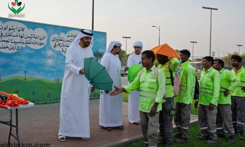 برعاية الشيخ سالم بن ركاضتوزيع مظلات واقية من حرارة الصيف على العمال في مدينة العين