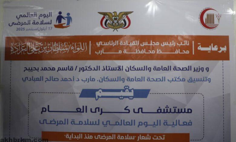 كما دعا الوكيل مفتاح جميع المستشفيات والمرافق الصحية في مأرب إلى أن تحذو حذو مستشفى كرى العام في تطبيق إجراءات ومعايير سلامة المرضى، بما يسهم في رفع مستوى الخدمات الصحية المقدمة للمجتمع، لافتاً إلى أن المرضى أمانة في أعناق الجميع ويستحقون عناية دقيقة ومتابعة مستمرة.