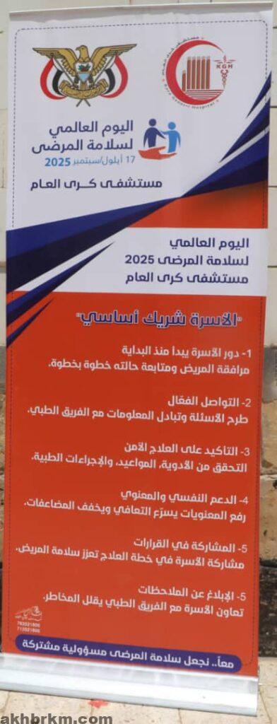 من جانبه، شدد مدير مكتب الصحة العامة والسكان الدكتور أحمد العبادي على أن المكتب يولي اهتماماً كبيراً لتطبيق معايير سلامة المرضى عبر تدخلات متواصلة في مستشفيات ومرافق المحافظة، مثمناً جهود إدارة مستشفى كرى العام في هذا الجانب.