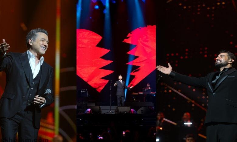 افتتح محمد شاكر السهرة بأداء مفعم بالإحساس، وتحوّل المسرح إلى موجة من المشاعر حين ذكر اسم والده الفنان فضل شاكر، وسط تفاعل مؤثر من الحضور. تلاه الفنان مروان خوري، الذي اصطحب الجمهور في رحلة حالمة بين كلماته وألحانه، ليمنح الأمسية لمسة رومانسية عذبة. أما آدم فقد واصل إشعال الأجواء بأدائه المتفرّد وصوته القوي، ليحافظ على تفاعل الجمهور حتى ختام الحفل.