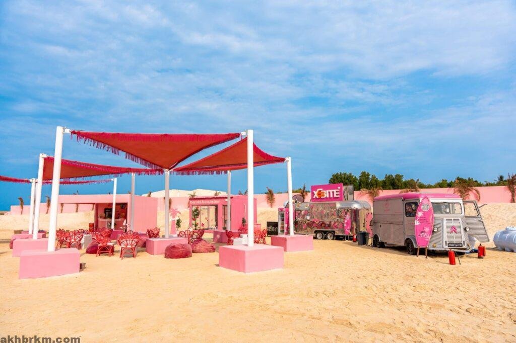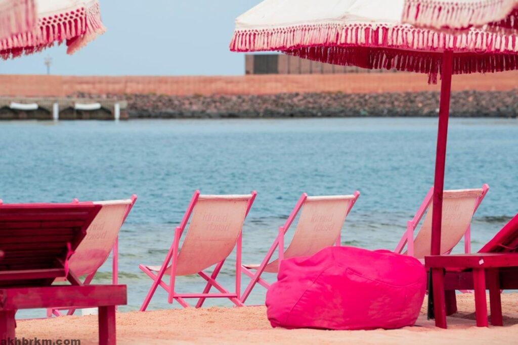ويتميز الشاطئ بتصميم عصري أنيق يغلب عليه اللون الوردي، في مساحات ذات خصوصية عالية توفر للزائرات بيئة مثالية للاستمتاع بجلسات مريحة، وإطلالات خلابة على ساحل البحر الأحمر.