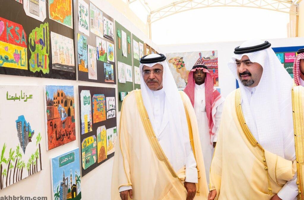 وفور وصول سموه لمقر الحفل بمدراس الملك عبدالعزيز النموذجيّة، كان في استقبال سموه مدير عام التعليم بالمنطقة ماجد القعير، والمشرف العام على المدارس إبراهيم العُمري، بعد ذلك عزف السلام الملكي ثم تجول سموه بالمعرض الفني الذي أقيم بهذه المناسبة والذي تضمن العديد من اللوحات الفنية، ثم شاهد سموه مجموعة من الأنشطة التي تضم أعمالاً ومشاركات متنوعة تواكب هذه المناسبة.
