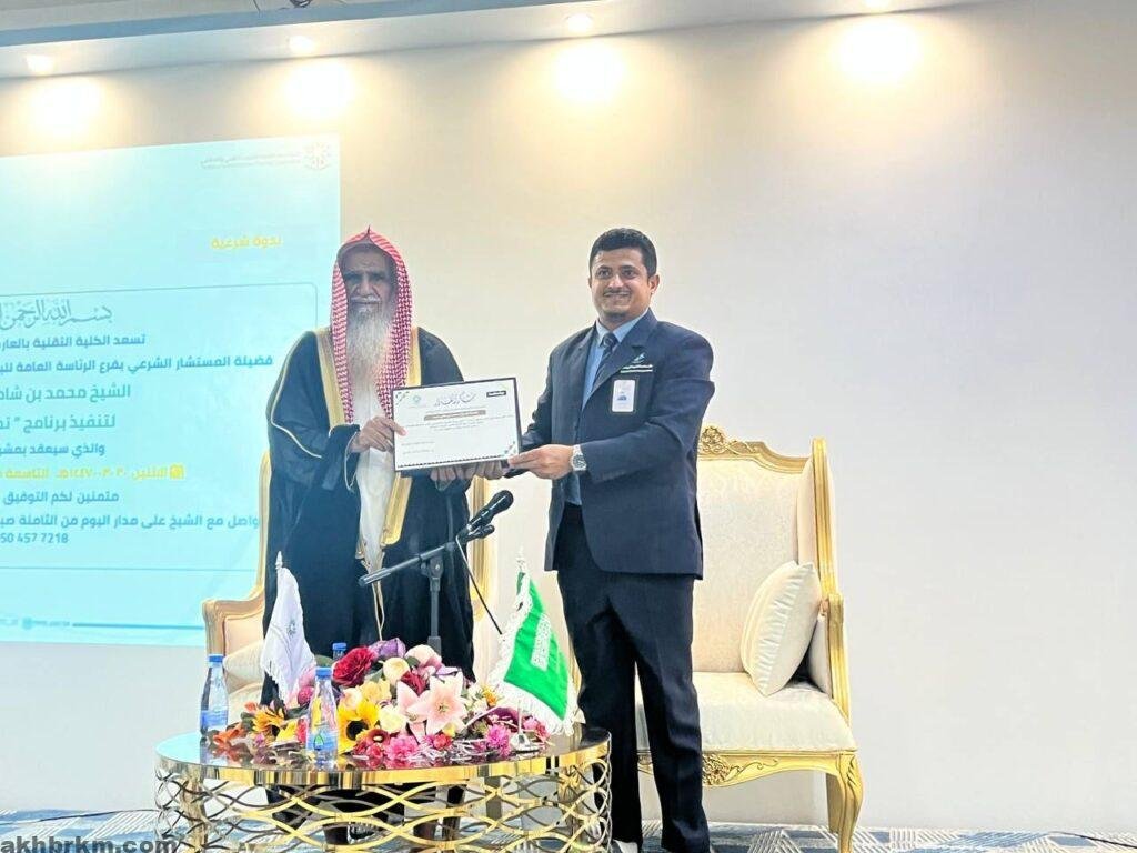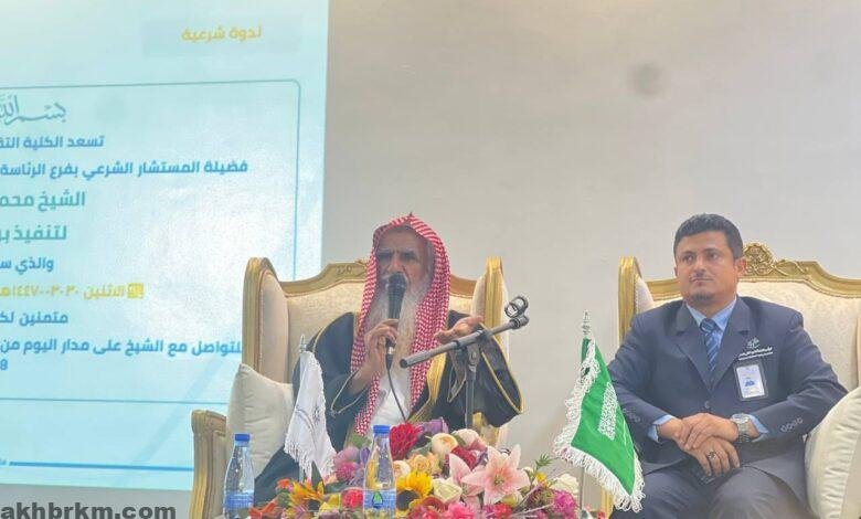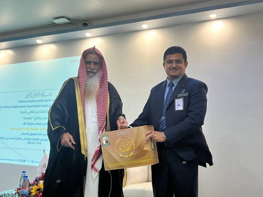 بموافقة كريمة من سمو أمير منطقة جازان -حفظه الله- وتوجيه ومتابعة من سماحة مفتي عام المملكة ومعالي نائبه -حفظهم الله- أقيم اليوم الأربعاء برنامج “تماسك” الذي يقدمه فضيلة المستشار الشرعي بفرع الرئاسة العامة للبحوث العلمية والإفتاء بمنطقة جازان، الشيخ محمد بن شامي شيبه، بحضور عميد الكلية التقنية بالعارضة المهندس عبدالله بن سلمان الجذمي وعدد كبير من طلاب الكلية التقنية بالعارضة، وذلك على مسرح الكلية.