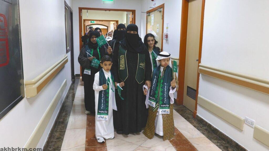 أبناء وبنات مجمع الأمير سلطان للتأهيل يزورون مرضى مجمع الدمام الطبي بمناسبة اليوم الوطني السعودي 95