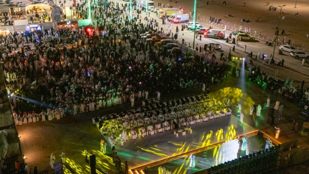 وتخللت الفعاليات مجموعة من العروض التراثية الشعبية التي أضفت أجواءً حماسية تفاعل معها الجمهور، أبرزها العرضة السعودية وعدد من الرقصات والفنون الفلكلورية، كما أشعل المسرح الفنان بندر بن عوير بصوته وحضوره.