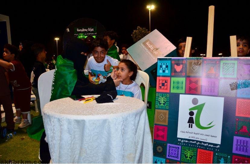 كما خصصت الجمعية ركنًا للرسم على الوجه للأطفال، استُقبل بحفاوة من الصغار وأسرهم، حيث أضفى البهجة والفرح على وجوههم من خلال رسومات وطنية تعبّر عن حبهم للمملكة.