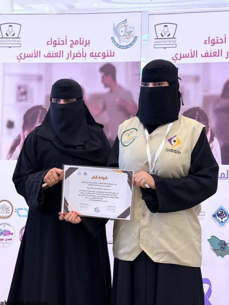 نفذ فريق قوة عطاء التطوعي التابع لجمعية مبادرة “احتوء 1″ على شرف المدير التنفيذي لجمعية رواد العمل التطوعي أ.عفاف صميلي والتي تهدف إلى التوعي بأضرار العنف الأسري وأثره على الفرد والمجتمع