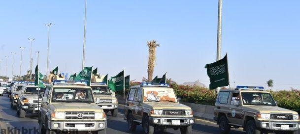 وجابت الشوارع والطرق الرئيسية بالمدينة.ويتقدم المسيرة هجانة يحملون راية التوحيد “لا إله إلا الله محمد رسول الله”، وصور القيادة الرشيدة، وشعارات وطنية، وشعارات تحمل عبارات يوم التأسيس “يوم بدينا”، وطن أسس ليبقى شامخاً.