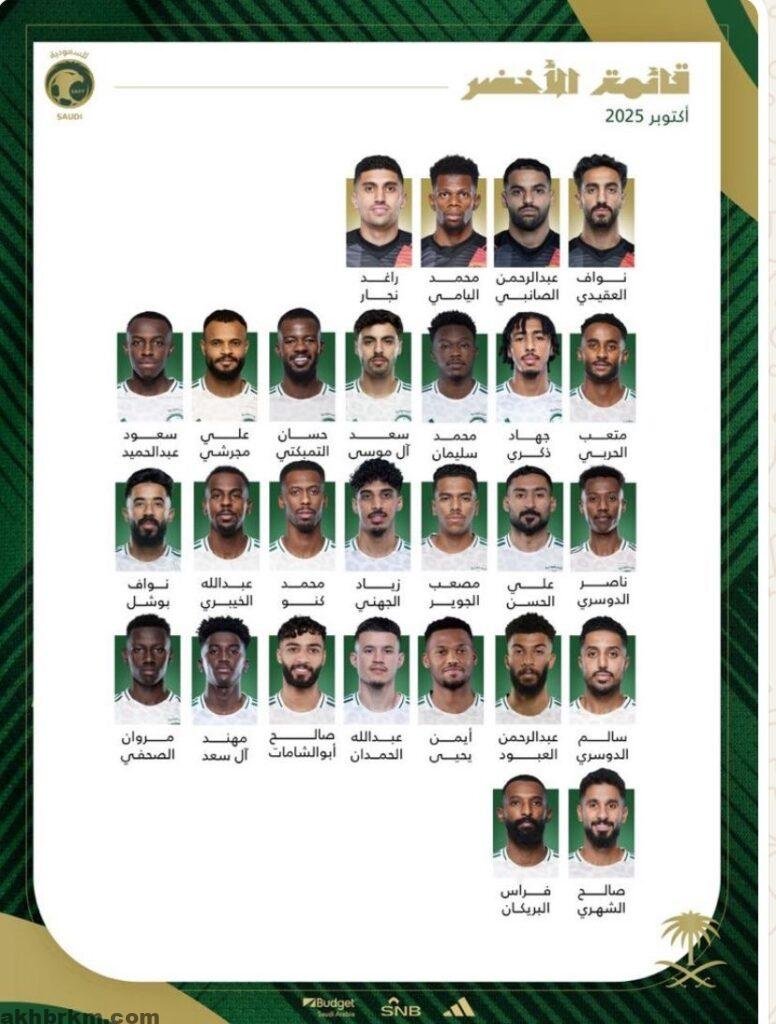 أعلن المدير الفني للمنتخب الوطني إيرڤي رينارد عن قائمة الأخضر استعدادًا لخوض منافسات الملحق الآسيوي المؤهل إلى نهائيات كأس العالم 2026.