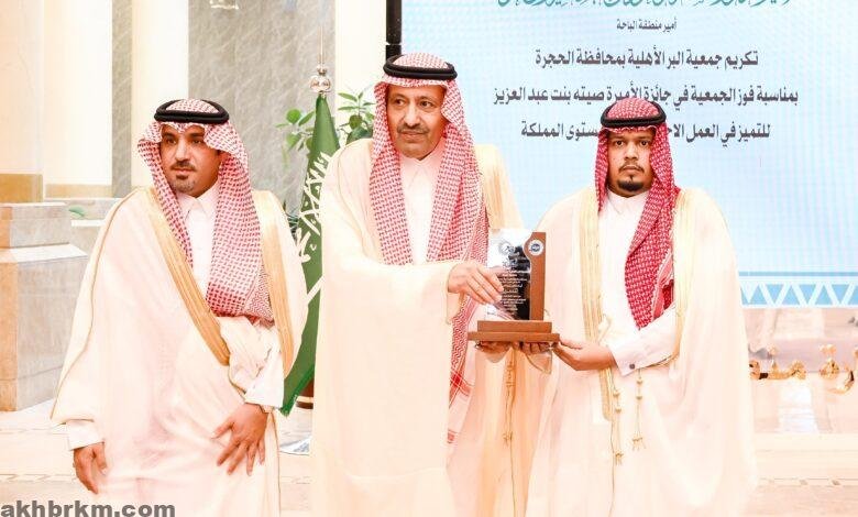 أمير منطقة الباحة يتسلم تقرير عن محافظة الحجرة ويكرّم جمعية البر بالمحافظة لفوزها بجائزة الأميرة صيته