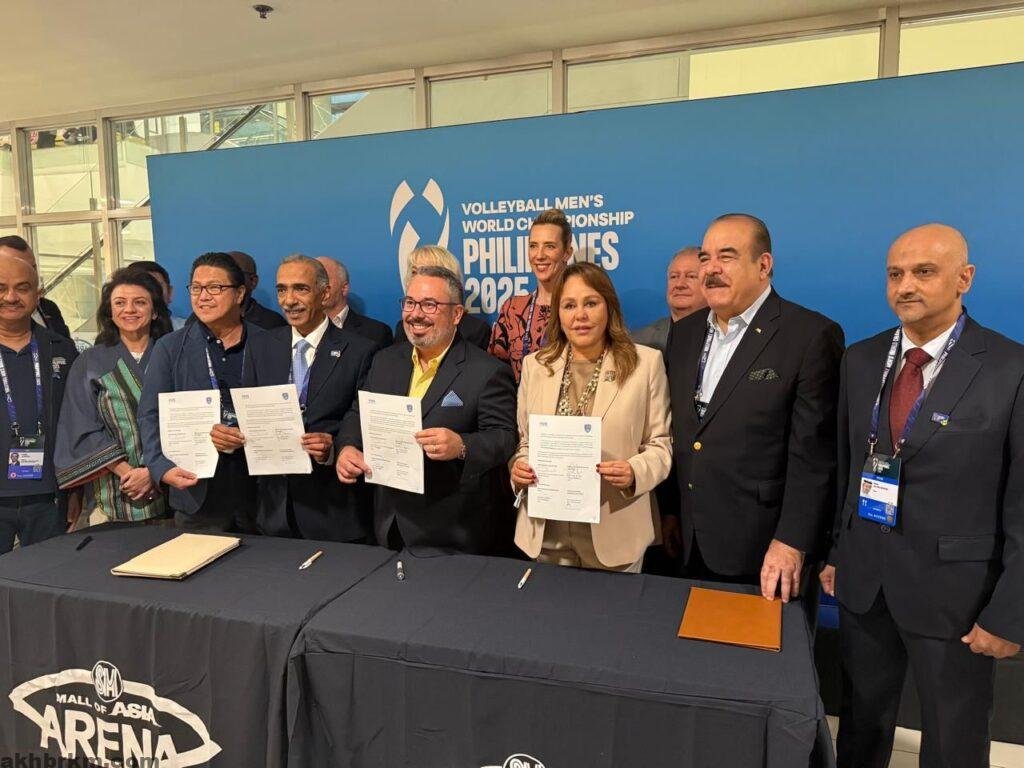 شهدت العاصمة الفلبينية امس، وعلى هامش بطولة العالم للكرة الطائرة، توقيع اتفاقية شراكة وتعاون بين الاتحاد الدولي للكرة الطائرة والاتحاد العربي للكرة الطائرة، تهدف إلى اعتماد البطولات العربية وتنظيمها بشكل رسمي تحت إشراف مشترك، بما يعزز مكانة الكرة الطائرة العربية ويمنحها اعترافاً دولياً أوسع. وقد حضر مراسم التوقيع كل من رئيس الاتحاد الدولي فابيو أزديڤو، والنائب الأول للرئيس مارتي هوفيز، ومن الجانب العربي الشيخ علي آل خليفة رئيس الاتحاد العربي، والأميرة آية بنت عبد الله بن الحسين عضو مجلس إدارة الاتحاد الدولي، و بشرى حجيج نائبة رئيس الاتحاد الدولي ونائبة رئيس الاتحاد العربي.